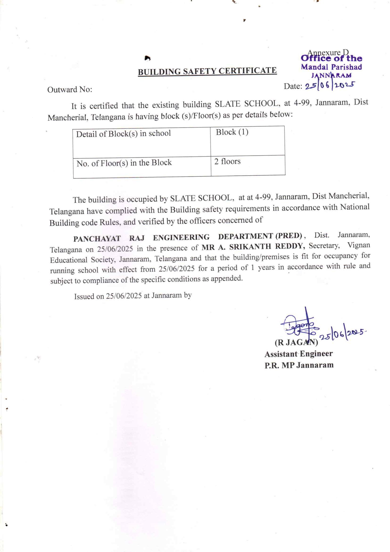 building safety certificate :